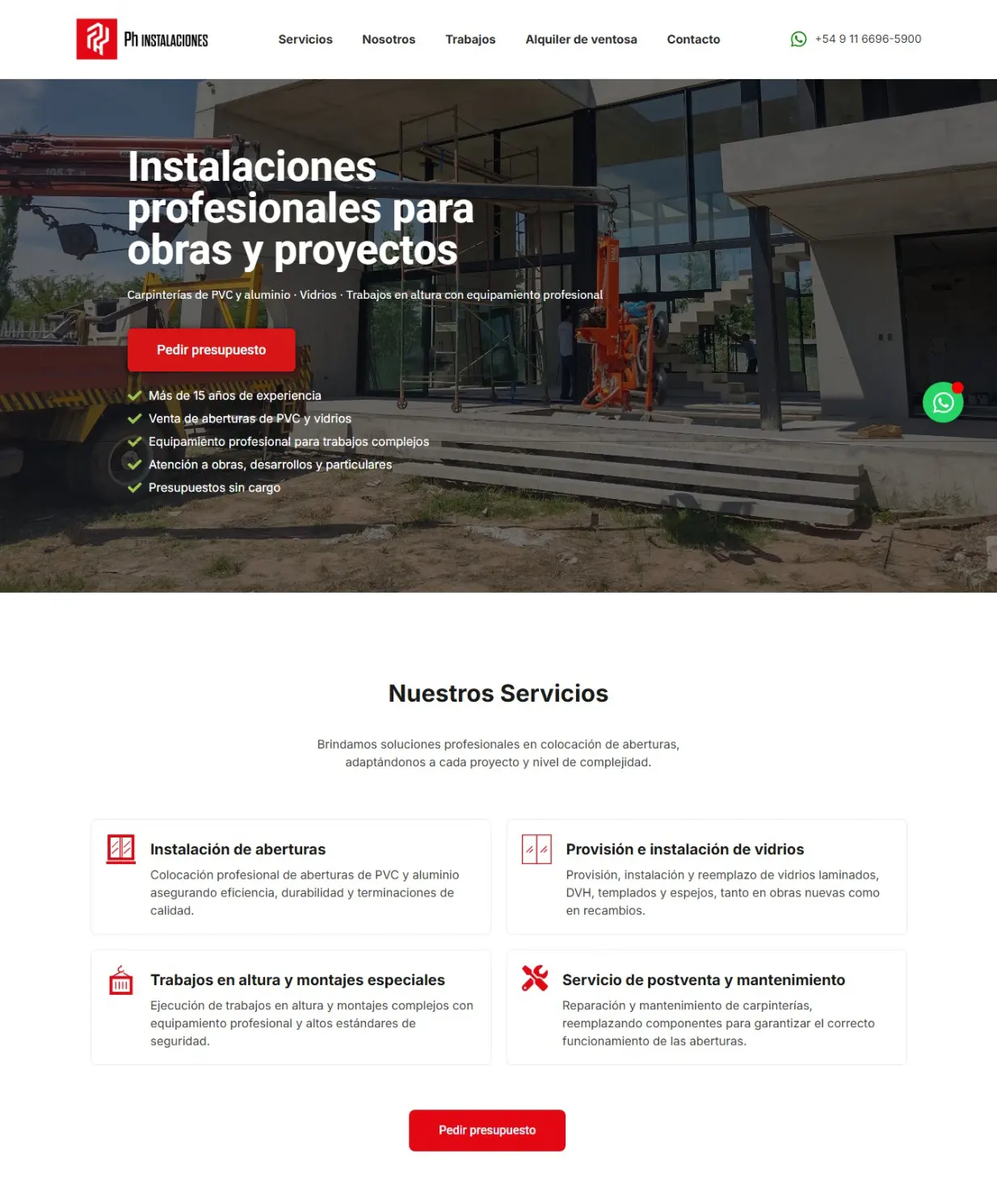 PH Instalaciones es una empresa especializada en instalación de aberturas y vidrios para obras, desarrollos y clientes particulares.